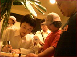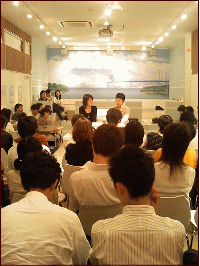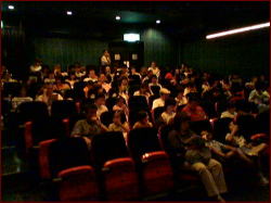 はじめまして、トンギコ製作上映委員会の太田です。 今日は育児に家事に仕事に大忙しな野中さんに代わって、とらば〜ゆカフェでの上映会をレポしたいと思いまーす。 今、青山に銭湯をイメージしたおしゃれカフェがオープンしております。なんで銭湯なのかと言うと、どうやら「とらば〜湯」ということらしいです。なんとま〜(笑) オレンジの煙突におっきなのれんがとっても目を引きます。通りがかった人みんながついついのぞいてしまうたたずまいです。店内は番台や富士山の絵もあり、ほんとに銭湯みたい。貧乏学生の私にも嬉しい値段で飲み物も注文でき、カフェとしてすごくおすすめです。みなさん一度寄ってみてはいかがでしょう? さて、日もすっかり沈み、そろそろお風呂につかりたくなる頃、富士山に大きなスクリーンがたれ、シネサロンが始まりました。 今回は「デジタルdeみんなのムービー」からプロジェクターとD-VHSのデッキをお借りしての上映です。「みんなのムービー」とは簡単な登録をするだけで、「トントンギコギコ」を上映するためのデッキとプロジェクターが無料でお借りできる、産業省が実施している事業のことです。 私は始めてこの機材での上映を見たのですが、とてもきれいでした。お客さんもたくさん入り、とてもいい湯加減な上映会でした。 トークショーは監督の就職活動時代、「世界の車窓から」の裏話、そして転職の動機、といった感じにとらばーゆならでは(?)の話しも伺えました。おもしろかったですよ。また明日からがんばろうって気になれたと言って下さるお客さんもいました。ほんと嬉しいです。 私は3月から「トンギコ」のお手伝いをさせてもらっているんですが、今回初めて自主上映会に参加しました。雰囲気が劇場とは違い、いろんな意味でお客さんとの距離が近かったです。緊張感が薄いんですね、例えばキョ君のシーンで笑いがおこった時いつもより笑いが自然にどっと出て、すごく心地良い笑いでした。 ああ、上映を楽しんでもらっているって体で実感できて幸せでした。会場全体がそういうなごやかな雰囲気です。一度自主上映会に足を運んでみるの、おすすめですよ。 次は10/2(土)「こどもの城」ですね。(また青山だ) こちらでは「図工大好き展」が行われてるので、また楽しみだなー。 |